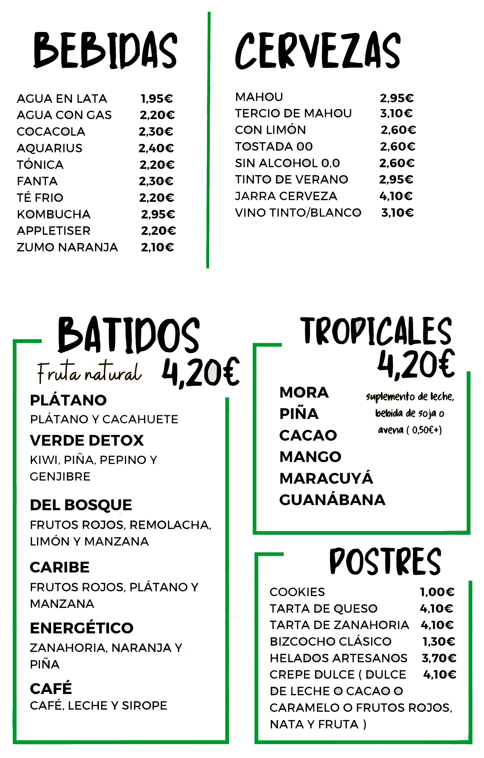 suplemento de leche o bebida de soja o de avena + 0,50€